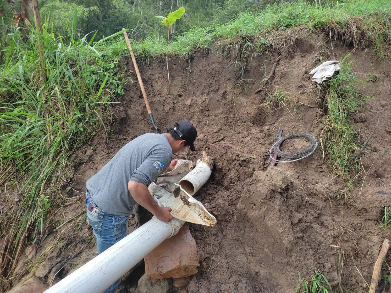 En d?as pasados, en Santa Mar?a, por cuenta de las fuertes lluvias y deslizamientos de tierra, se presentaron espec?ficamente, da?os causados en las l?neas de aducci?n entre desarenador y planta de tratamiento, donde un alud de tierra se arras? con un tramo de tuber?a en PVC de di?metro de 6" RDE 21, desde el acueducto que abastece la cabecera Municipal, afectando la prestaci?n del servicio.