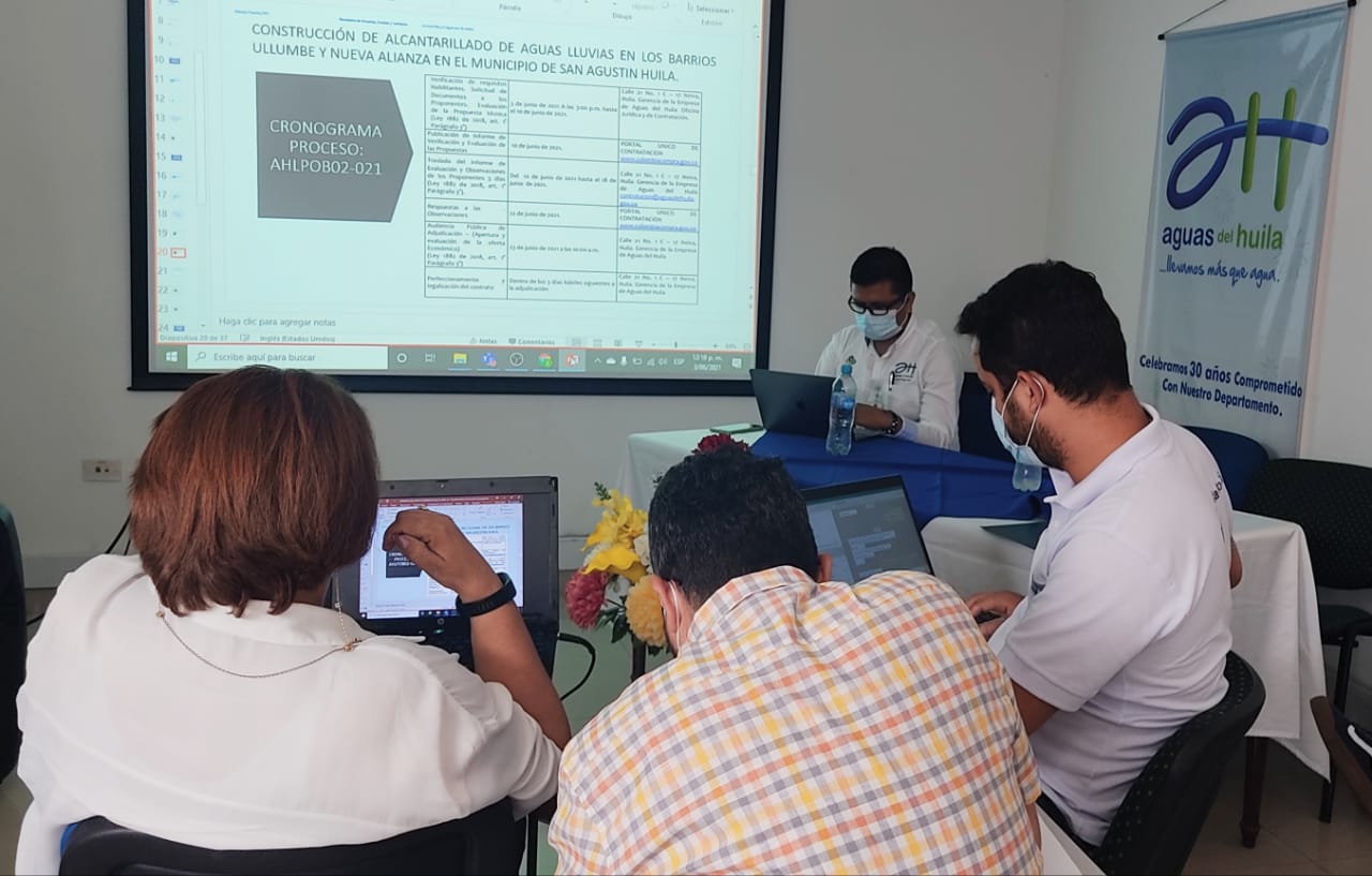 Durante la reuni?n de seguimiento sostenida entre el subdirector de Desarrollo Empresarial del Ministerio de Vivienda Ciudad y Territorio, Luis Gonz?lez y el gobierno de Huila Crece a trav?s de Aguas del Huila con su Gerente Cristian Camilo Bravo Medina, se realiz? seguimiento a obras y se incluyeron nuevos compromisos para el Plan Departamental de Aguas.