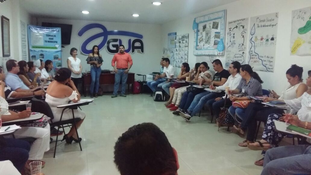 Con este taller se pretende que los docentes sean multiplicadores de los conocimientos impartidos por la Dra Ruby Esperanza Montoya, funcionaria del Viceministerio de Agua y Saneamiento B?sico, y desarrollen a partir del a?o 2018 proyectos de servicio social estudiantil en cultura del agua.